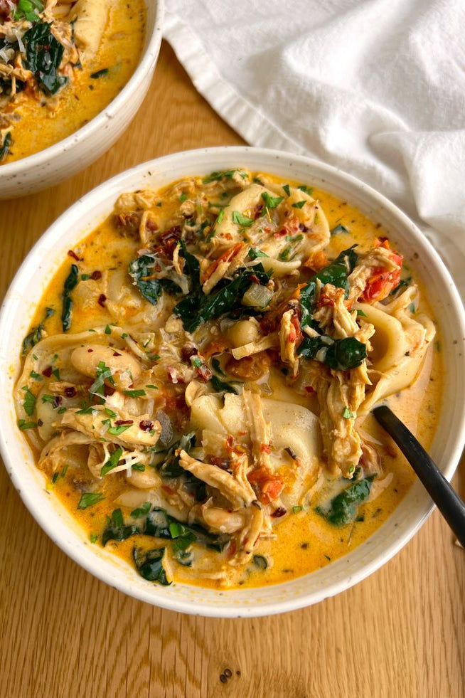 A cozy, classic bowl of comfort loaded with tender chicken, cheese-filled tortellini, and veggies simmered in a savory, herb-forward broth. This one feels like a hug.