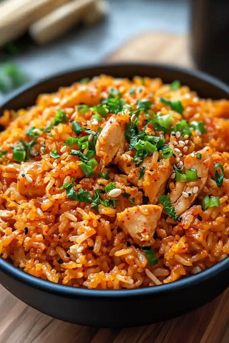 Sweet and savory gochujang-glazed chicken served over kimchi rice, paired with a crisp sesame cucumber salad and finished with scallions and sesame seeds for bold, crave-worthy flavor.